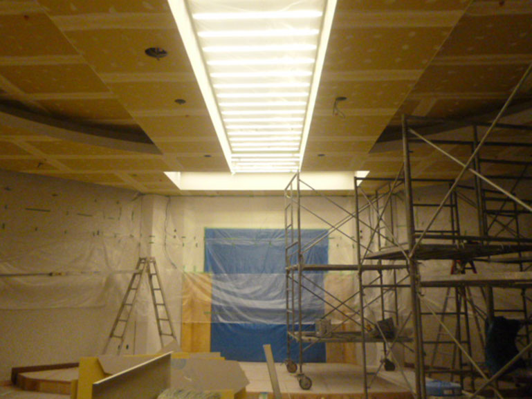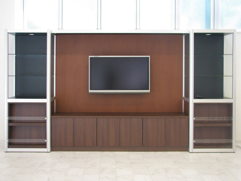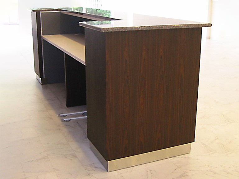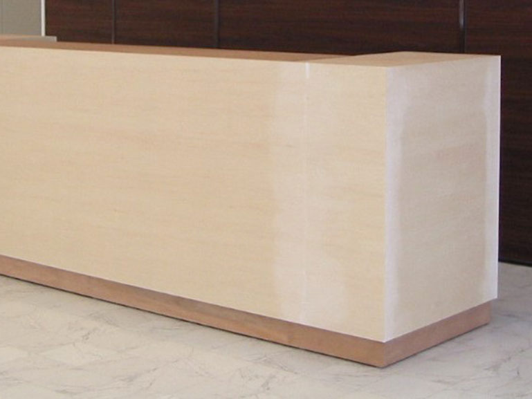 全面改修に伴い、お客様のご要望を元に造作にてテレビボードや受付カンターを製作しました。