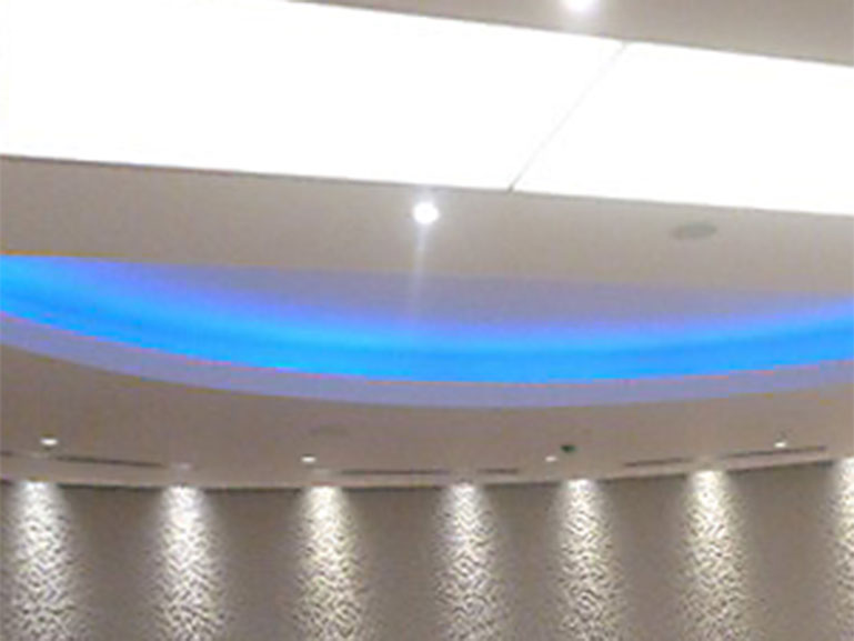 楕円形に間接照明を入れるために、下がり天井にしました。