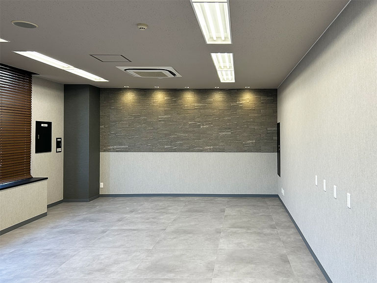 事務所や会議室、リフレッシュエリアなど、居室空間の内装工事にて壁・床・天井・間仕切りなど総合的に手掛けました。