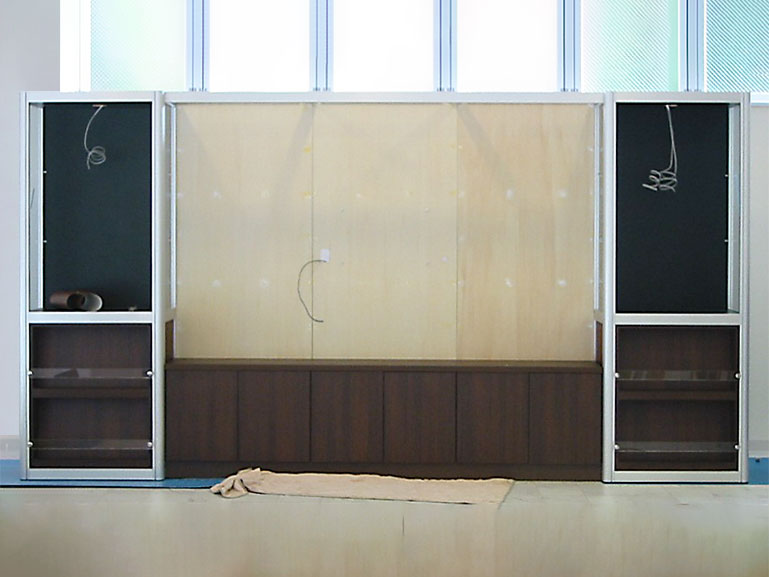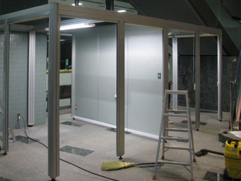 規格寸法でなく、お客様の要望に合わせた空間です。部材や補強材など、寸法に合わせて加工・取付したアイデアの詰まったブースです。